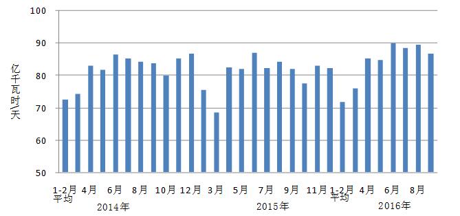 圖5: 2005年以來(lái)歷年1-9月份利用小時(shí)情況