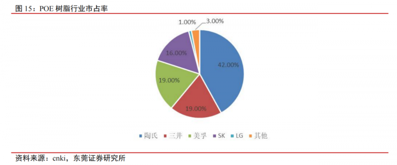 目前,陶氏化學(xué)以42%的市場(chǎng)份額,成為全球排名第一的POE樹(shù)脂龍頭公司,三井化學(xué)、美孚公司均以19%的份額分列二三位。