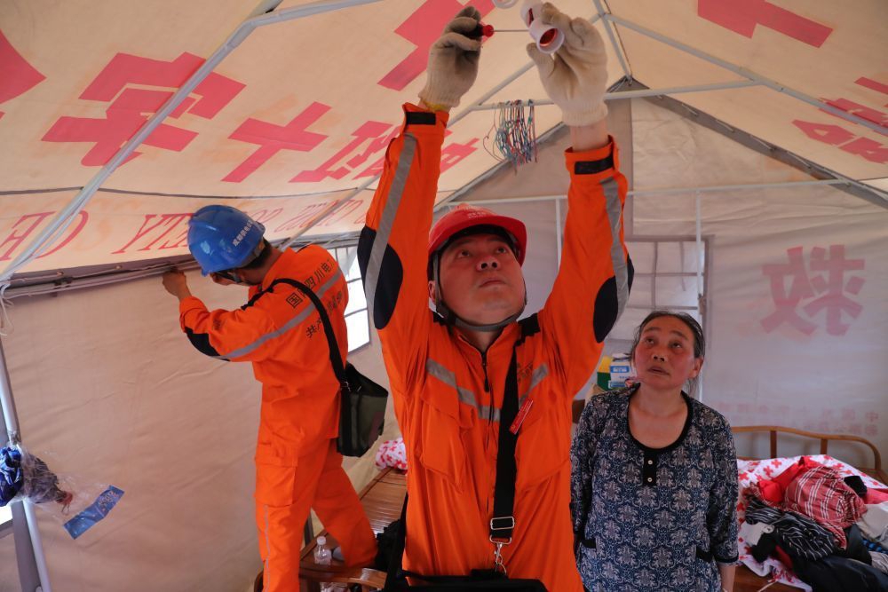 2019年6月19日,高新連心橋黨員服務(wù)隊馳援宜賓抗震救災(zāi),為受災(zāi)群眾安置點帳篷接電。新華社發(fā)(謝勇 攝)