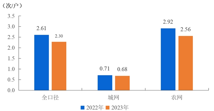 全國用戶平均停電頻率2.30次/戶,同比減少0.31次/戶,其中,城網0.68次/戶,農網2.56次/戶。城網地區(qū)與農網地區(qū)相差1.88次/戶。