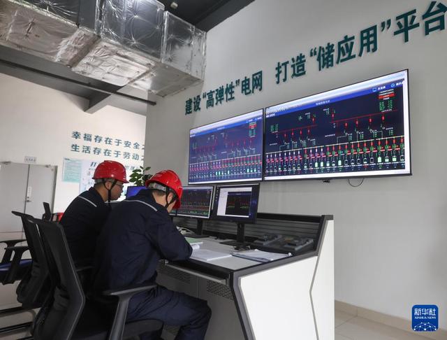 6月13日,在位于浙江省湖州市的長興10千伏雉城電網側儲能電站控制室,工作人員在查看儲能設備運行情況。