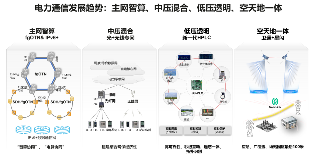 新型電力系統(tǒng)下,通信目標(biāo)網(wǎng)呈現(xiàn)四大特征:主網(wǎng)智算、中壓混合、低壓透明、空天地一體。主網(wǎng)智算需要考慮的是包括以東數(shù)西算為代表的光跑電不跑,以邊緣計算為代表的電跑光不跑,以及結(jié)合時空特性,來助力解決新能源消納和削峰填谷;近期臺風(fēng)應(yīng)急帶給我們的啟發(fā)是,10kV通信網(wǎng)是電網(wǎng)通信目前最薄弱的環(huán)節(jié),是典型的“盲區(qū)”。這需要體系性規(guī)劃以光纖+無線專網(wǎng)的通信目標(biāo)網(wǎng),也要輔之以空天地一體的應(yīng)急和廣覆蓋能力;隨著海量的分布式光伏接入、充電樁接入、分布式儲能接入、用戶互動及潛在的負荷側(cè)交易,這需要體系性思考支撐400V低壓透明的通信需求。