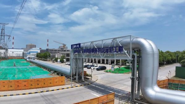 6月19日,全國首個工業(yè)用途核能供汽項目——中核集團“和氣一號”核能供汽項目正式投用。這條管道中,核能轉化的“零碳蒸汽”正沸騰著奔涌向換熱站,并在這里轉化后用于化工生產。