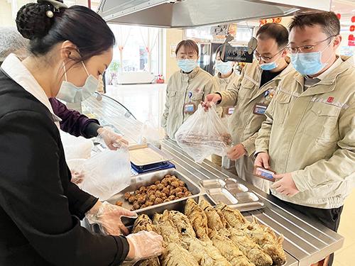 中國(guó)電力網(wǎng)訊 春節(jié)臨近,年味漸濃。為了確保春節(jié)堅(jiān)守在崗的職工能吃到“家”的味道,臨汾熱電公司職工餐廳提前安排、早早動(dòng)手、精心烹飪了炸丸子、紅燒雞、紅燒肉、炸魚(yú)等多種熟食“年貨”供職工選購(gòu),2月2日,特色年貨窗口開(kāi)放,職工們排起了長(zhǎng)隊(duì),紛紛選購(gòu)自己中意的熟食。