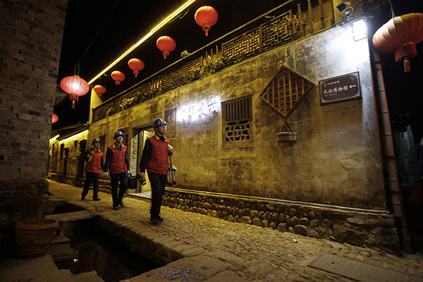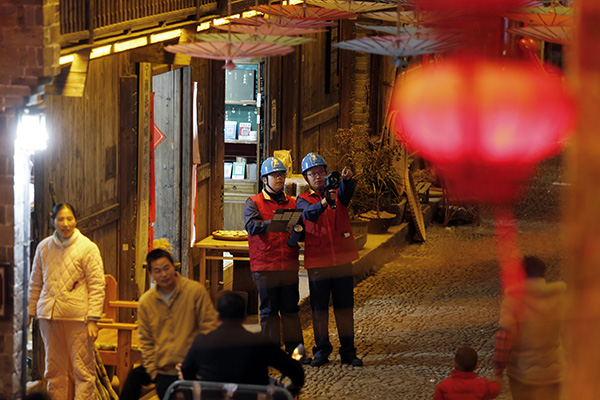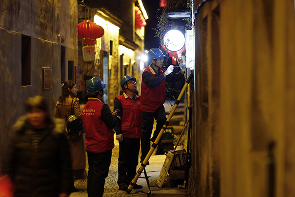 夜幕降臨,前童古鎮(zhèn)條條古巷的燈光開始亮起來,但古巷旁水渠里仍倒影著隊員們忙碌的身影。有了國網寧??h供電公司工作人員不辭辛勞的保供電,留浙過年的新寧海人在前童古鎮(zhèn)這個元宵節(jié)將過得格外溫暖。