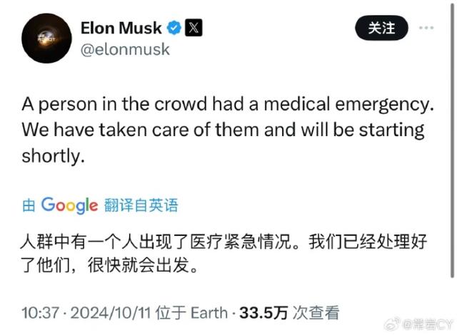10:32 在活動(dòng)現(xiàn)場(chǎng)有人暈倒。馬斯克在推特上回復(fù)稱,由于有人需要緊急醫(yī)療,特斯拉將在開(kāi)場(chǎng)之前先照顧他們。