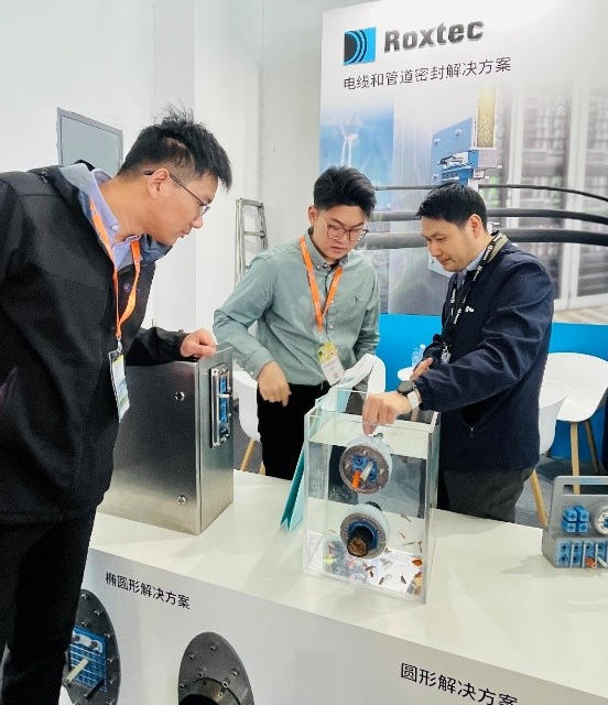 大批風電設備制造商、開發(fā)商及技術專家蒞臨參觀。國內(nèi)某風電整機廠技術專家表示:“以往項目中,不同規(guī)格管線要匹配不同密封件,選型、庫存管理都很繁瑣,Roxtec多徑技術直接解決了這個痛點,對提升安裝效率很有幫助。”