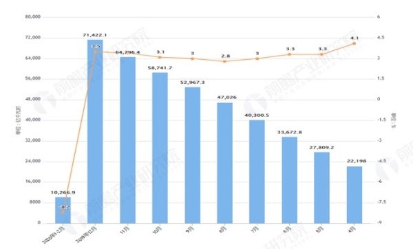 2020年2月前全國(guó)發(fā)電量及增長(zhǎng)情況圖