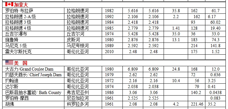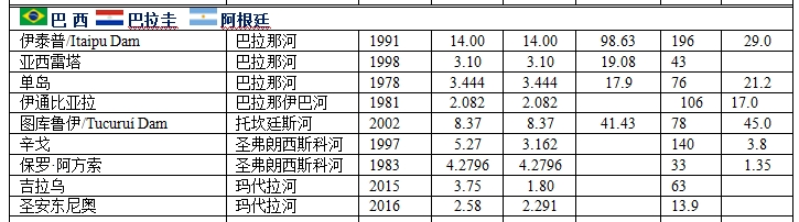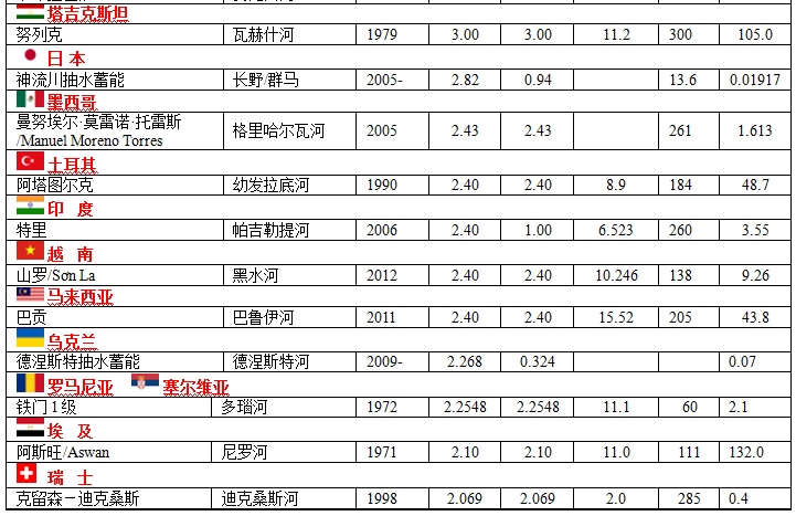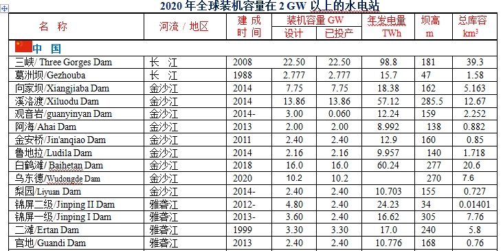 梯級水電站是世界上發(fā)展水力發(fā)電的一個(gè)重要的獲取電力的方式。在制作下表時(shí),我把相同一河流的水電站歸納在一起,您可以看出,世界上許多河流都是梯級水電站。