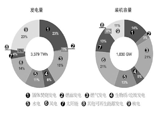 圖2 2020年歐盟發(fā)電量和發(fā)電裝機容量(預(yù)估)